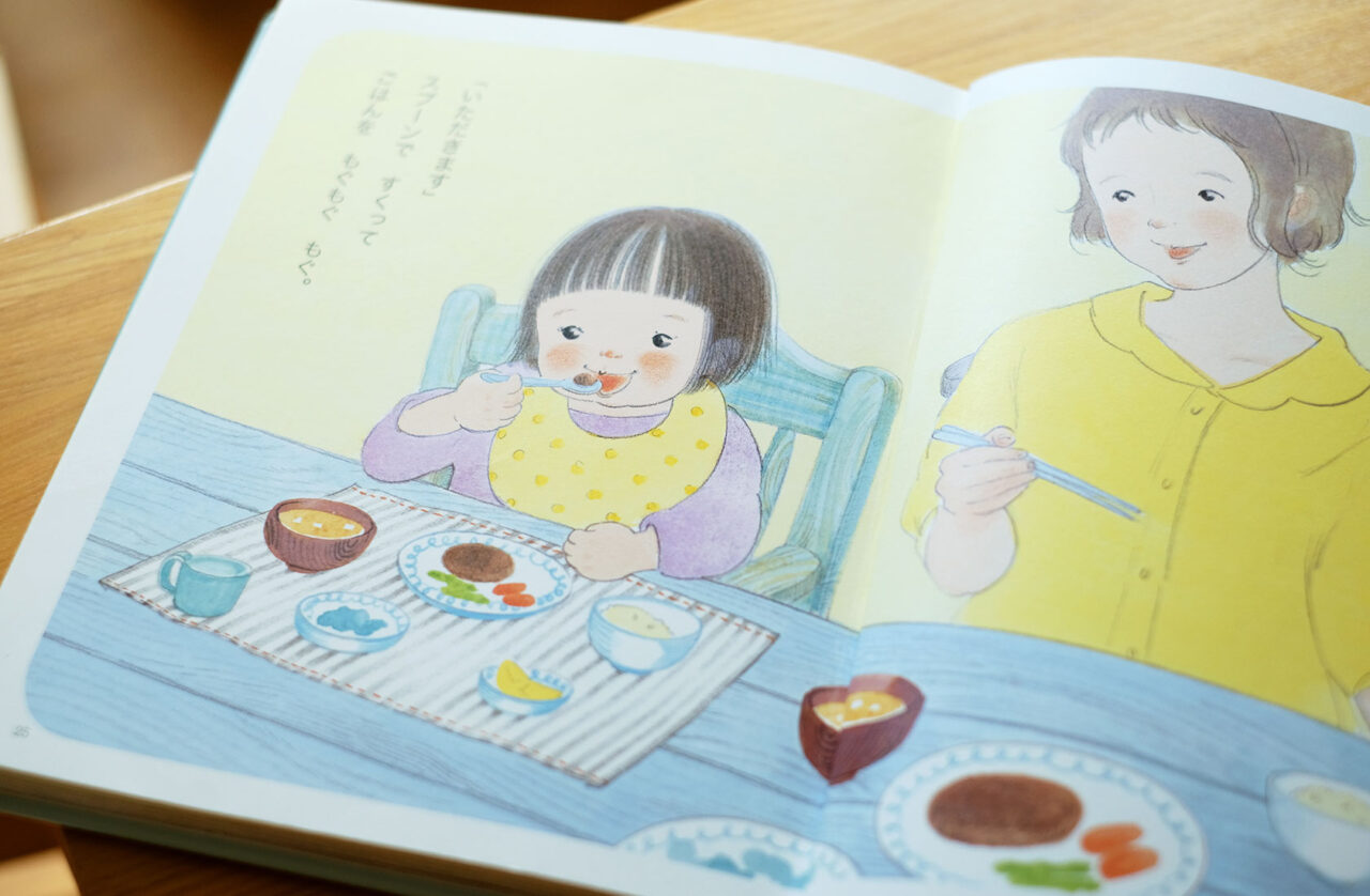 もりといずみ(以下、もりと):僕がまるやまさんの絵を知ったのは、『0・1・2さいのすこやかねんねのふわふわえほん』(講談社)のイラストが一番最初でしたね。娘が小さい頃に何度も何度も読みました。その娘はもう小学生なので、今改めて見ると懐かしいなあ。子どもが小さい時って、こうなんですよね。髪型も、顔とか、手足の形も。